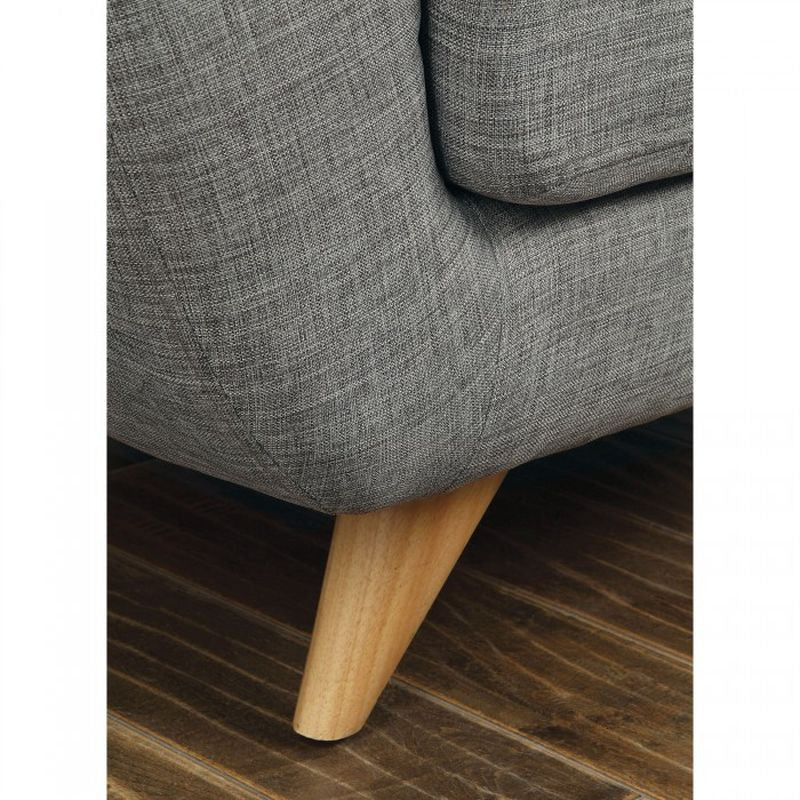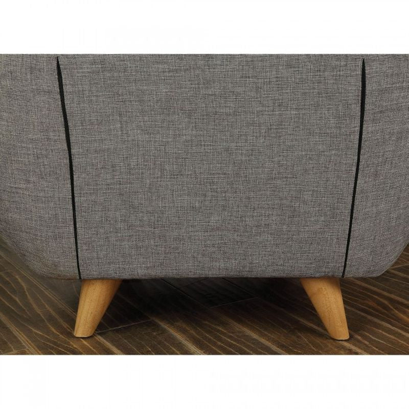 Enhance your living room's contemporary appeal with this chic sofa set! Entirely upholstered in padded linen-like fabric, each piece features angled feet and armrests. Lean back against the button tufted backrest and let your worries drift away as you relax against the stylish foam-filled cushions. Available in two neutral colors. - Mid-Century Modern Style - Flared Arms - Wooden Tapering Legs - Tufting - Padded Linen-like Fabric - Light Gray