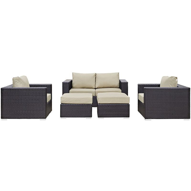 Convene 5 Piece Outdoor Patio Sofa Set in Espresso Beige