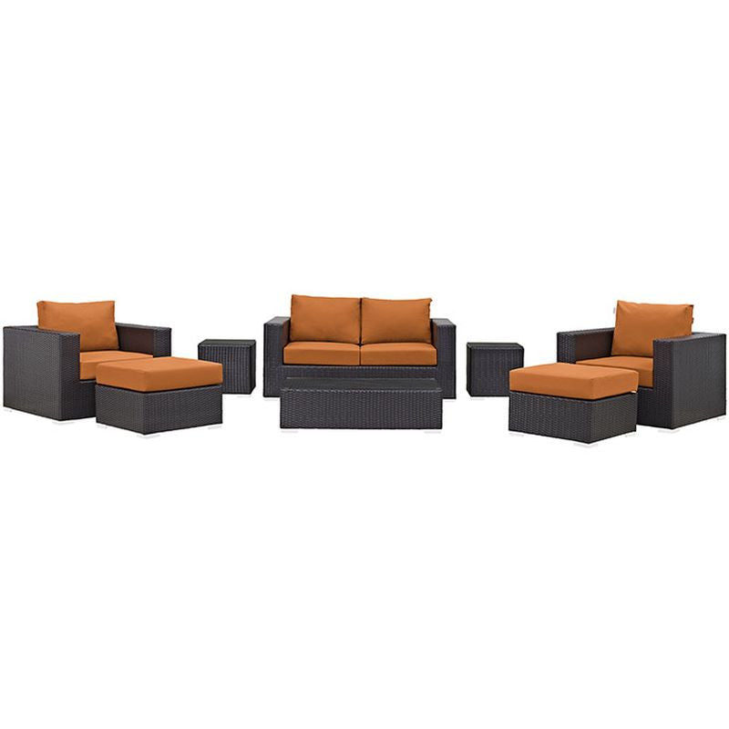 Convene 8 Piece Outdoor Patio Sofa Set in Espresso Orange