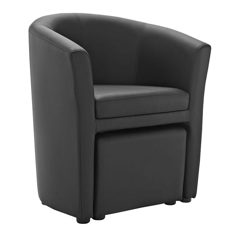 Reveal wondrous moments with the Divulge faux leather arm chair. Made with a self-storage tuck away ottoman, thoroughly enjoy each seating moment from either a reclining or upright position. Divulge is a streamlined modern arm chair padded with dense foam and finely upholstered for a soft ambiance throughout. Fashioned for seating adventures filled with simple grandeur, the Divulge arm chair is perfect for living, lounge or reception areas.