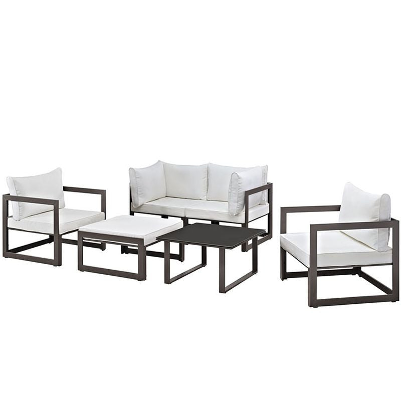 Fortuna 6 Piece Outdoor Patio Sectional Sofa Set in Brown White