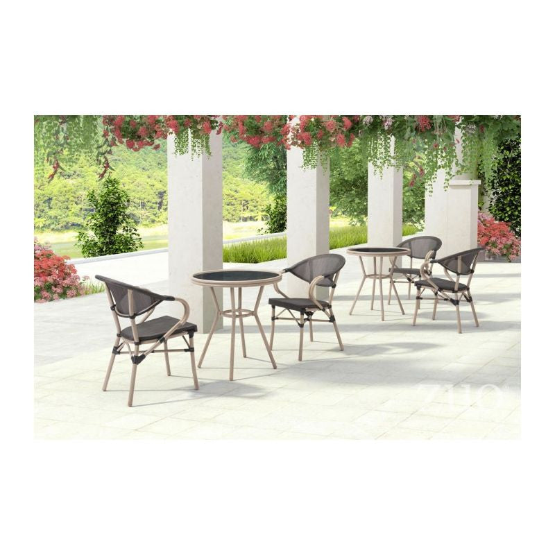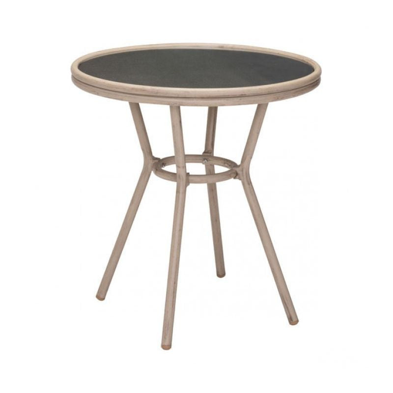 Marseilles Dining Table offer a casual café bistro look with natural colored synthetic bamboo style frame and dark brown textilene top. Perfect addition for petite outdoor dining on a small patio or install in groups for a perfect French Bistro style feel any day or night!