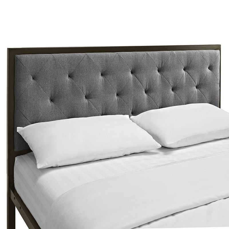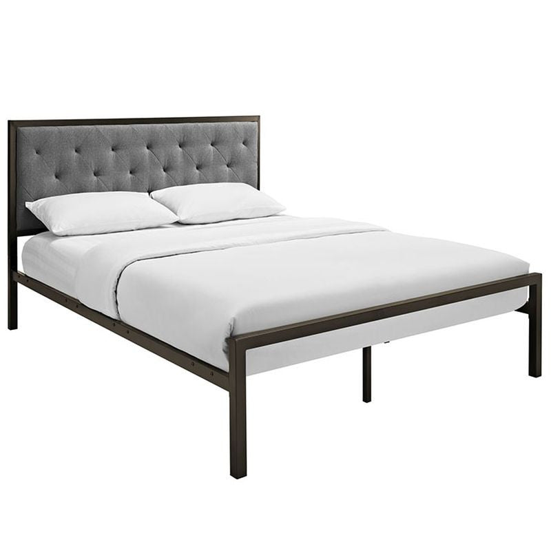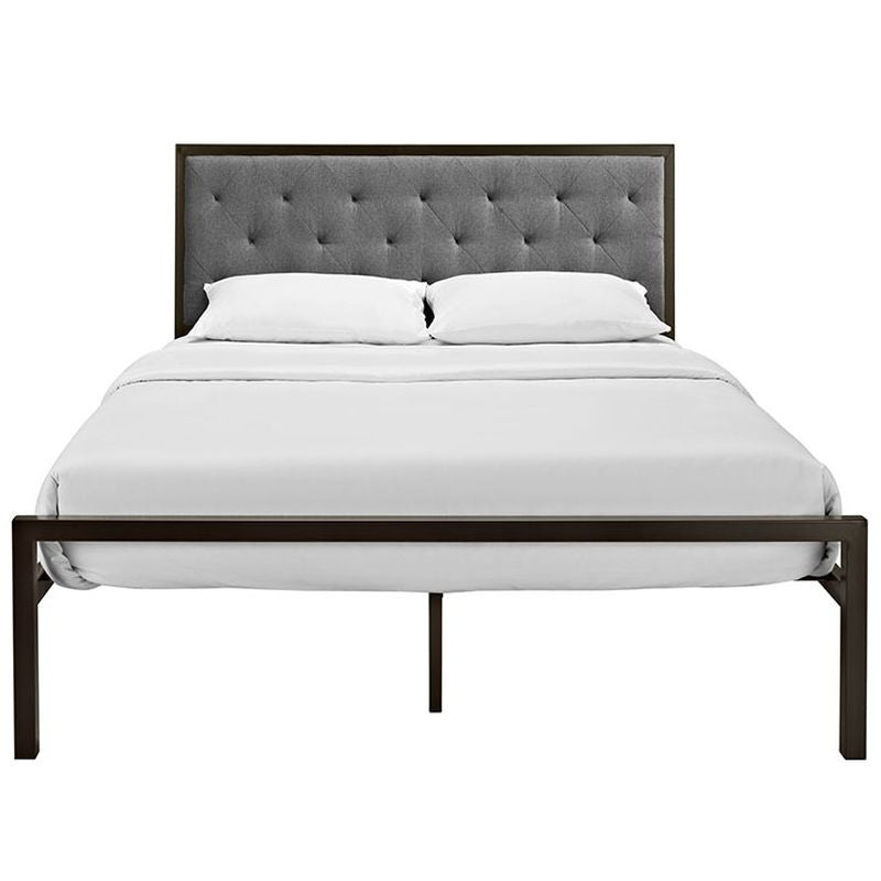 Mia Queen Fabric Bed in Brown Gray