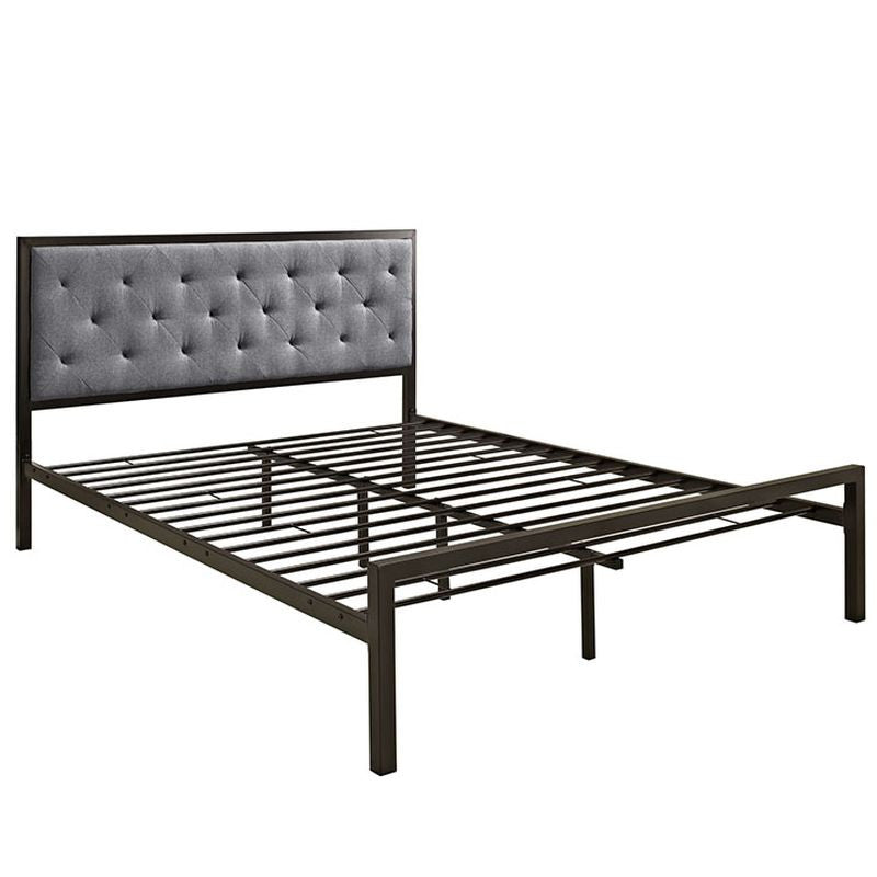 Sleep peacefully with a platform bed solid in both style and construction. Mia comes with a powder-coated steel frame that offers sturdy and long-lasting support, while the fabric headboard with deep tufted buttons add a touch of magnificence to an otherwise minimalist design. The Mia Platform Queen Bed does not require a box spring. Queen mattress not included.