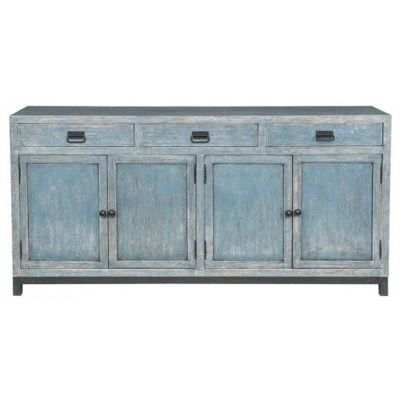 Miles Sideboard 3Dwr 4Dr Teal - 76W x 16D x 37H, Pine Wood, IRON, Drawers and Shelves Included, Adjustable Shelves, Hand Finished and Distressed Finish, Solid Wood Construction, Transitional