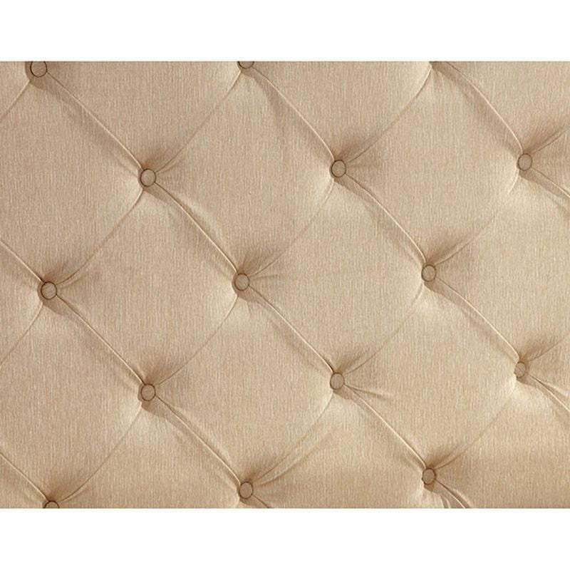 Elegance is the first thing that comes to mind upon seeing this set. Floral accents adorn the oval headboard and footboard with a padded, button-tufted centerpiece. Opt for a striking contrast with ivory leatherette, or choose the matching dark brown leatherette for a more harmonious feel. Finished in brown cherry. - Luxurious Design - Oval Headboard w/ Floral Design - Sturdy Fluted Bed Posts - Padded Leatherette H/B & F/B - Antique Brass Handles - Dark Walnut Finish