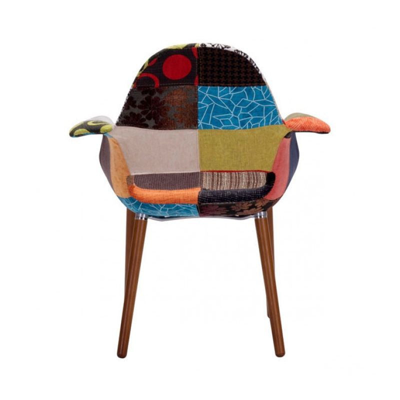 With a fashion forward multi-color and multi-pattern patchwork, The Moshe Chair is a fun statement piece for any space. It sits on walnut legs and is constructed from a plastic inner shell. This chair will wow all those see it!