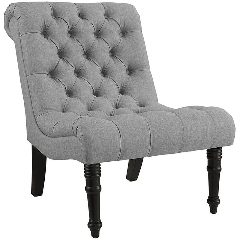 Sail forth with the elegant Navigate Lounge Chair. Crafted with an exquisite scroll-back design and deep tufted buttons, Navigate makes it easy to thoroughly enjoy leisure time from an esteemed position of nobility. Made of dense foam upholstered in polyester, Navigate rests solidly on black stained wood legs. While the stalwart back legs secure posture, finely tapered front legs embellish this already exceptional piece. Navigate works well in vintage, chic, contemporary, global and other eclectic spaces.
