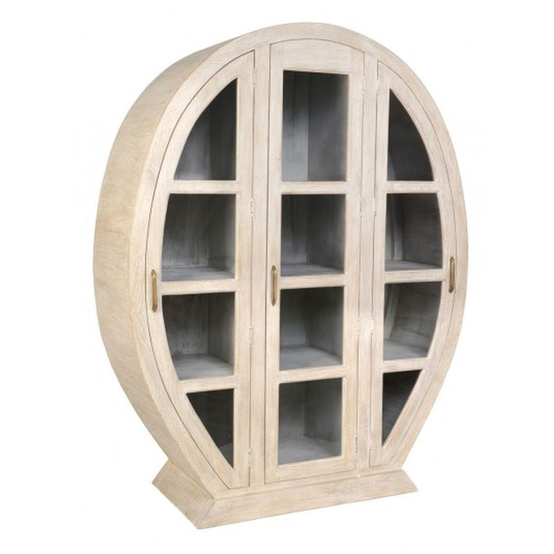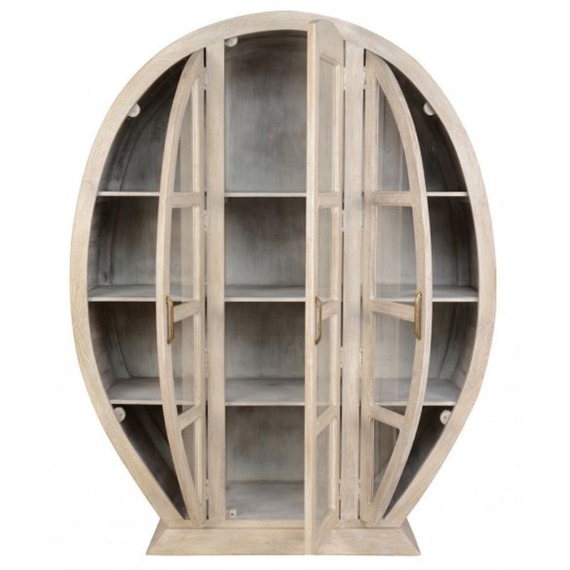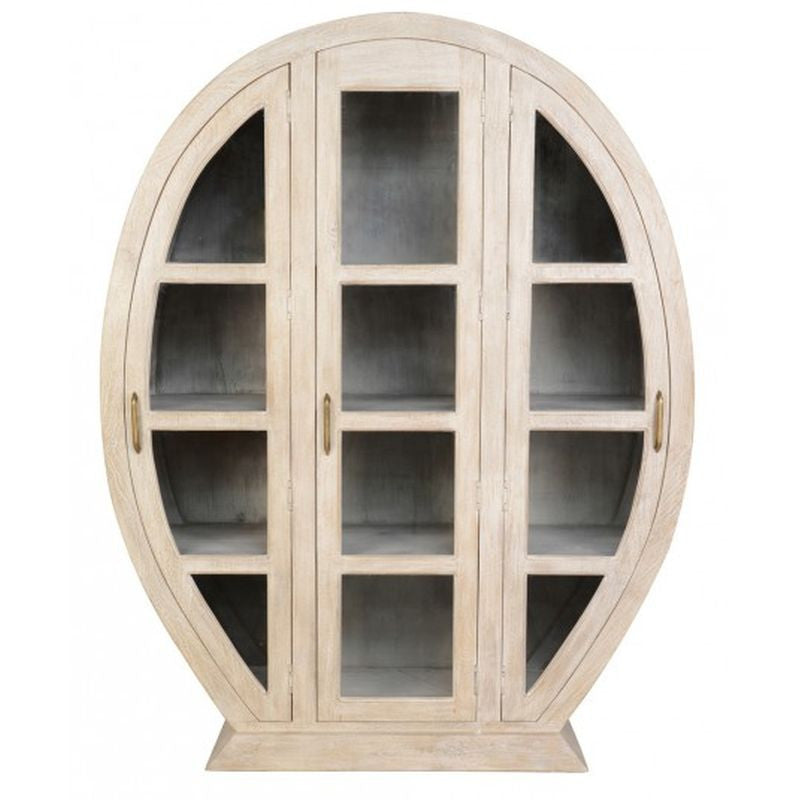 Oasis Oval Display Cabinet - 61W x 23D x 77H, Mango Wood, Shelves Included, Fixed Shelves, Hand Finished and Distressed Finish, Solid Wood Construction, Glass Doors, Transitional