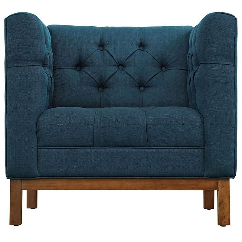 Add vivacity to your decor with the Panache Collection. Designed to express elegance and comfort, Panache comes outfitted with deeply tufted buttons and plush cushions for a timeless charm. Constructed with solid wood legs, fine fabric upholstering, and a reinvented mid-century style design with a dash of vintage charm, enhance your living room, lounge or meeting area with the Panache Collection.