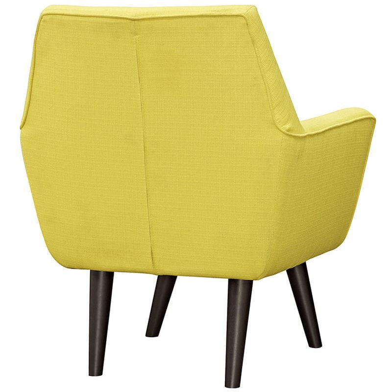 Engage your sensibilities with the organically shaped Posit armchair. Posit is gracefully positioned on solid espresso stained dowel legs designed according to mid-century design practices. Whether settling in with coffee and brunch, or entering a spirited discussion with friends, Posit’s polyester upholstery, two rows of finely stitched back seat buttons, and organic form ensure an eye-catching appeal at every turn. Bring depth and modernity to your contemporary living room or lounge area with the Posit armchair.