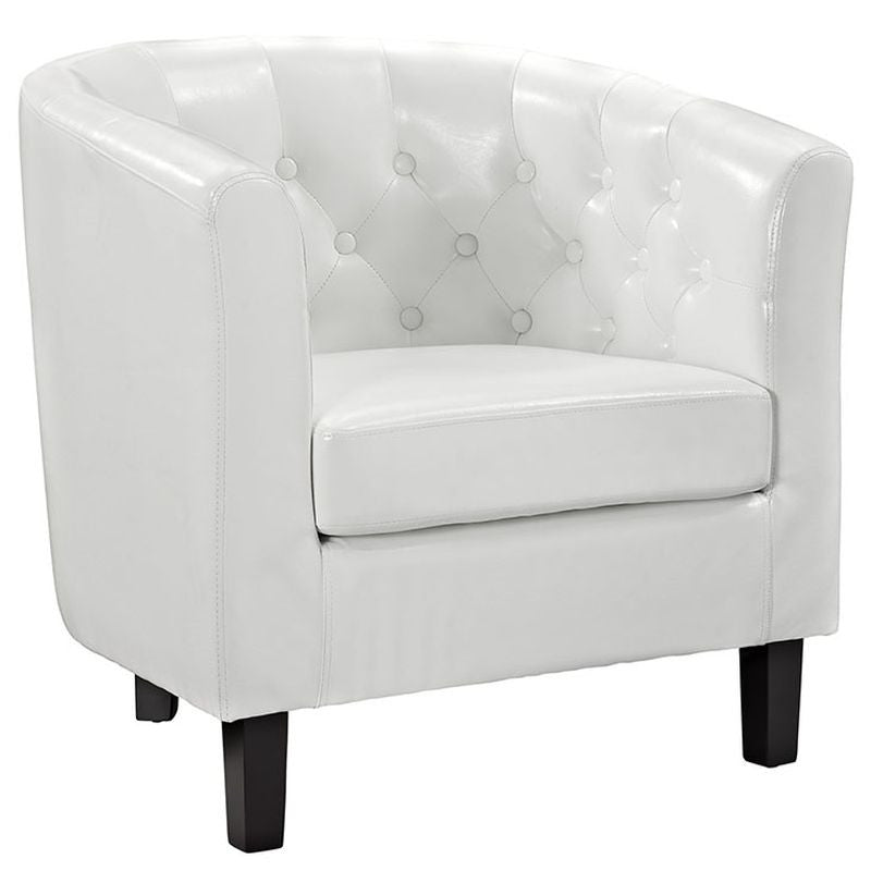 Intrinsically luxurious, Prospect hints at a classic Chesterfield design before blending with a modern twist for a new look to love. Button tufting and sweeping curves mesh to form a contemporary lounging piece that all will be drawn to. This cozy armchair features comfortable foam padding and faux leather materials that finish off an artistic piece with eye catching appeal.