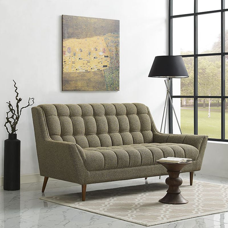 Embrace leisure time with the artfully designed Response Collection. Exquisitely crafted with tufted seat and back, gently sloping arms, and adorable design, Response comes well-loved for all the right reasons. Dense foam padding ensures comfort, while the well-orchestrated style will energize your space. Tapered wood legs with non-marketing foot caps finish off this piece of distinctinction and estimable appeal.