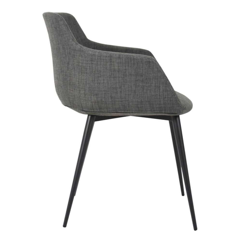 The Ronda Arm Chair is a classic mid-century design with a contemporary twist. Made with 100% polyester fabric and steel legs.