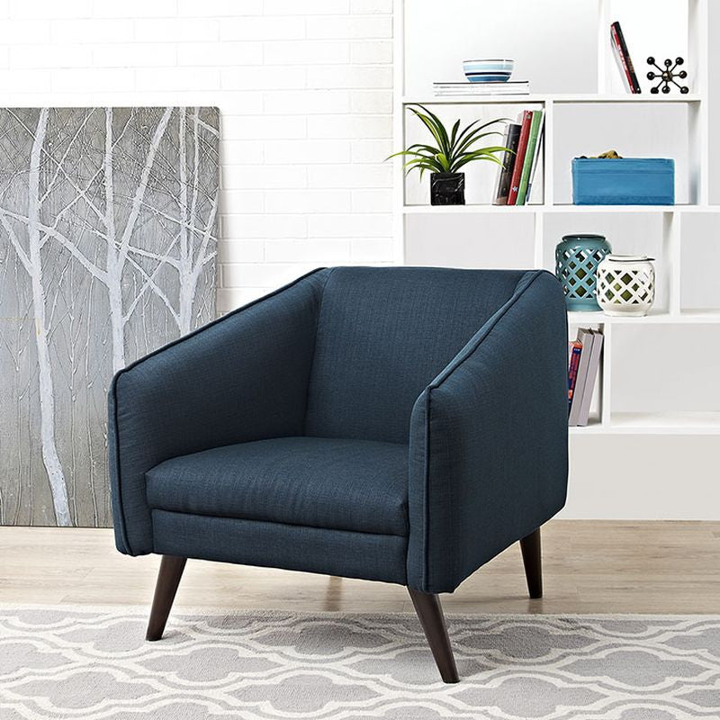 Maintain continuity with Slide. Designed to personify progressiveness, Slide comes in polyester with a finely stitched trim for elegant appeal. Outfitted with dark walnut stained dowel wood legs, plush dense foam padding, and a rich mid-century style, the Slide armchair imparts a rewarding seating experience for contemporary living rooms, lounge spaces, and reception areas.