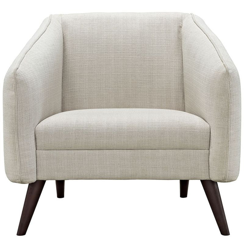 Maintain continuity with Slide. Designed to personify progressiveness, Slide comes in polyester with a finely stitched trim for elegant appeal. Outfitted with dark walnut stained dowel wood legs, plush dense foam padding, and a rich mid-century style, the Slide armchair imparts a rewarding seating experience for contemporary living rooms, lounge spaces, and reception areas.