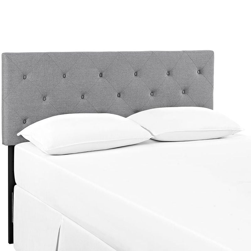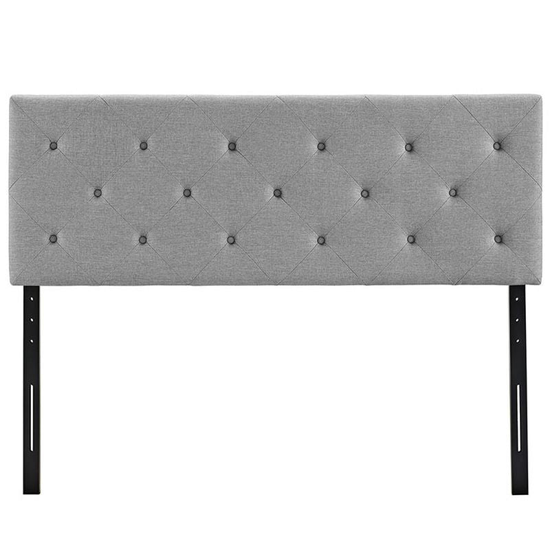 Enhance your decor with the distinguished Terisa Headboard in Fabric. Magnificently adorned with deep button tufting and a diamond-patterned trim, Terisa comes finely upholstered in polyester, a solid wood frame, adjustable black coated metal legs, and dense foam padding for ultimate support. Rejoice with a contemporary design that exceptionally compliments your bedroom decor. Fully Compatible with Sharon, Sherry and Helen Platform Bed Frames.