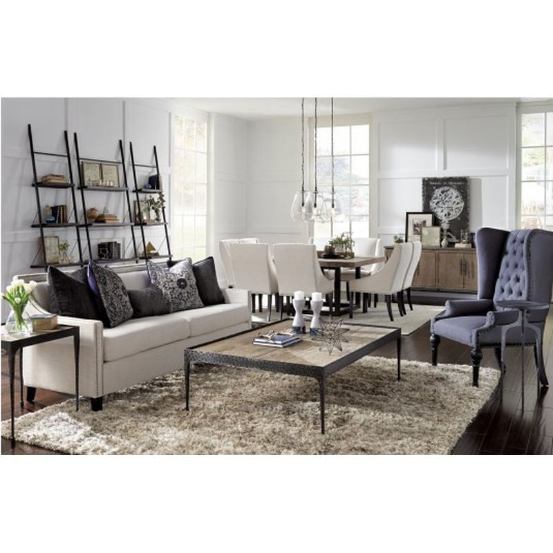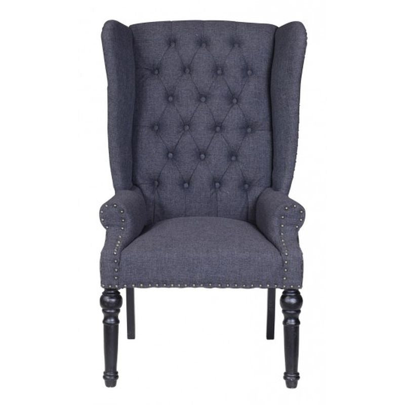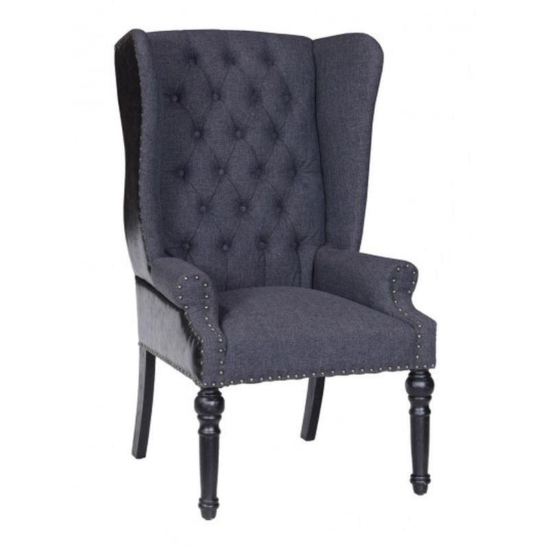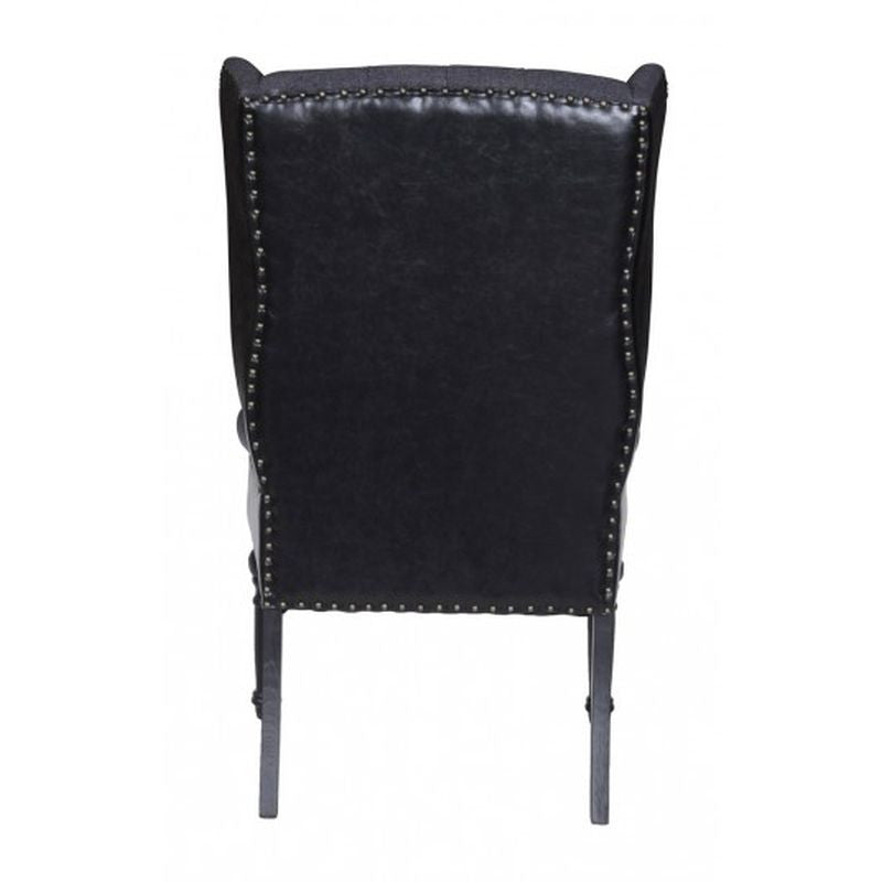 Theodore Wingback Chair - 30W x 31D x 49H, Oak Wood, 100% polyester, Nailheads, Solid wood legs, Button tufting, Wingback design, Decorative nailheads, Faux leather outside upholstery fabric inside seat arms and back, Transitional