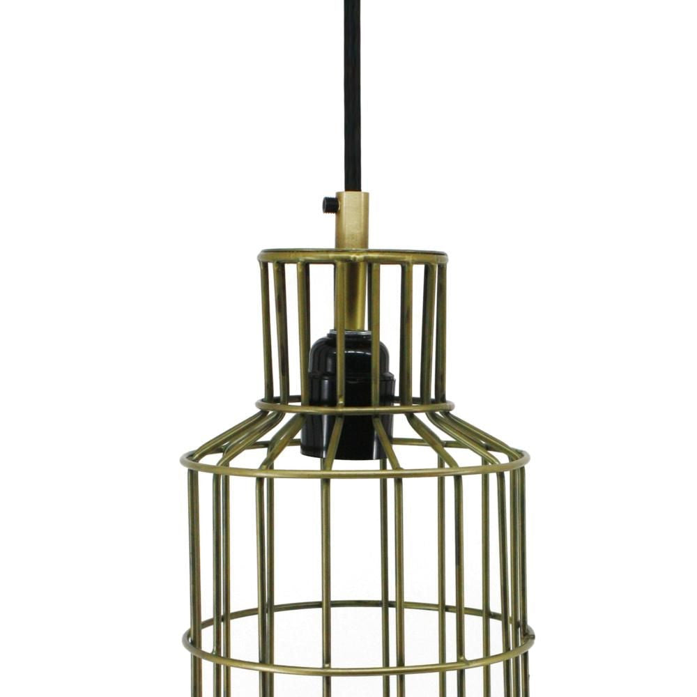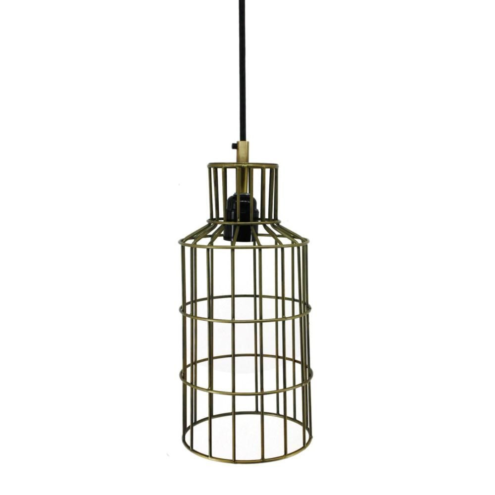 Reminiscent of a coalmine lamp, the Vernon Pendant features an iron cage and quality antiqued-brass finish.