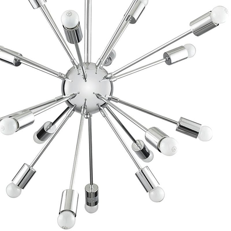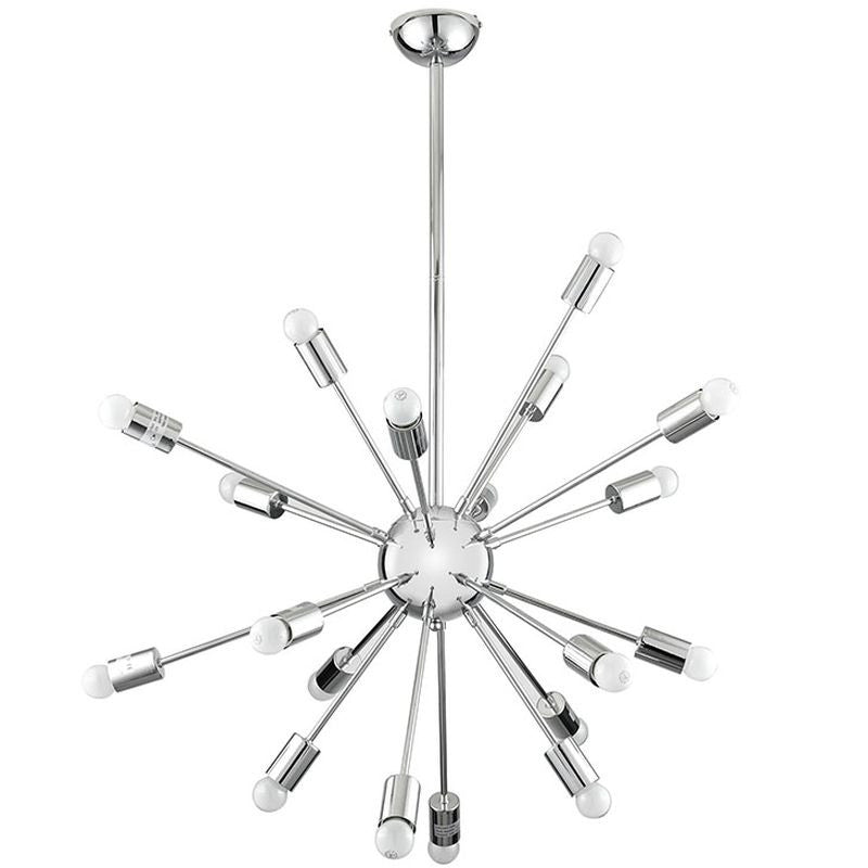 Release an impressive array of 24 beams of light in the Volley chandelier. Positioned to convey bursts of energy while illuminating your entire room, Volley is an inspiring piece that also serves its functional tasks admirably. Made of chrome plated metal, instill endless possibility in this piece that begins with 24, but takes you much further still.