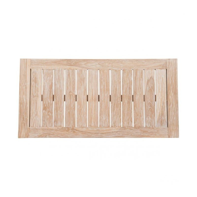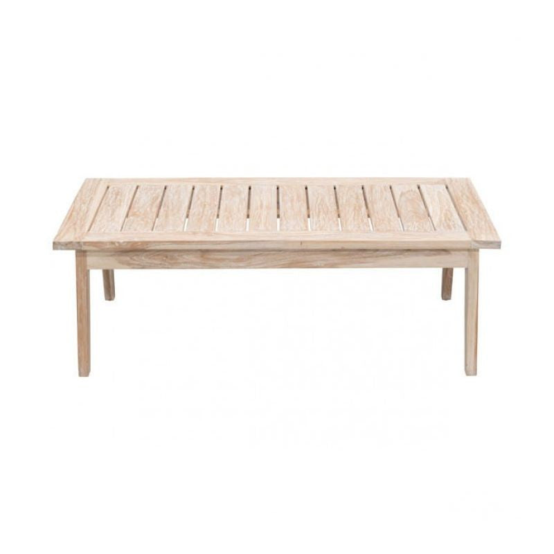 West Port Coffee Table is made from 100% grade BC Teak with a soft white wash finish to the beautiful golden color and features a slated rectangular modern design. Sold separately the collection includes sofa, armchair, and dining table with matching chairs. Perfect for lounging or entertaining in casual to formal outdoor living rooms.